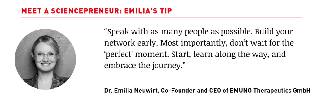 From a 14-year-old student competing in science contests to leading EMUNO Therapeutics, Dr. Emilia Neuwirt has turned curiosity into therapies that could transform patient care. Emilia, Co-Founder and CEO of EMUNO Therapeutics GmbH, has travelled a path from early student science competitions to becoming a postdoctoral scientist, licensed pharmacist, and entrepreneur. With a background in molecular pharmacology and immunology, she is now dedicated to developing innovative immunotherapies. In this interview, Emilia reflects on her journey from academia to entrepreneurship, the challenges of translating research into innovation, and her vision for bridging science with business.