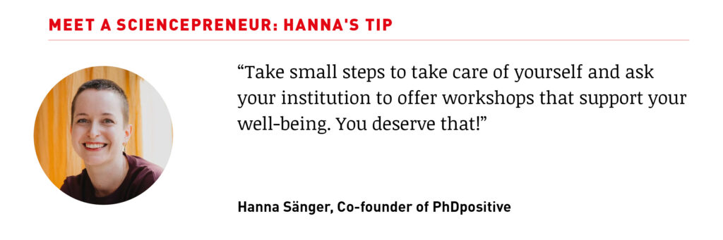 Hanna: And don’t wait for others to fix the system for you. Take small steps to take care of yourself and ask your institution to offer workshops that support your well-being. You deserve that!